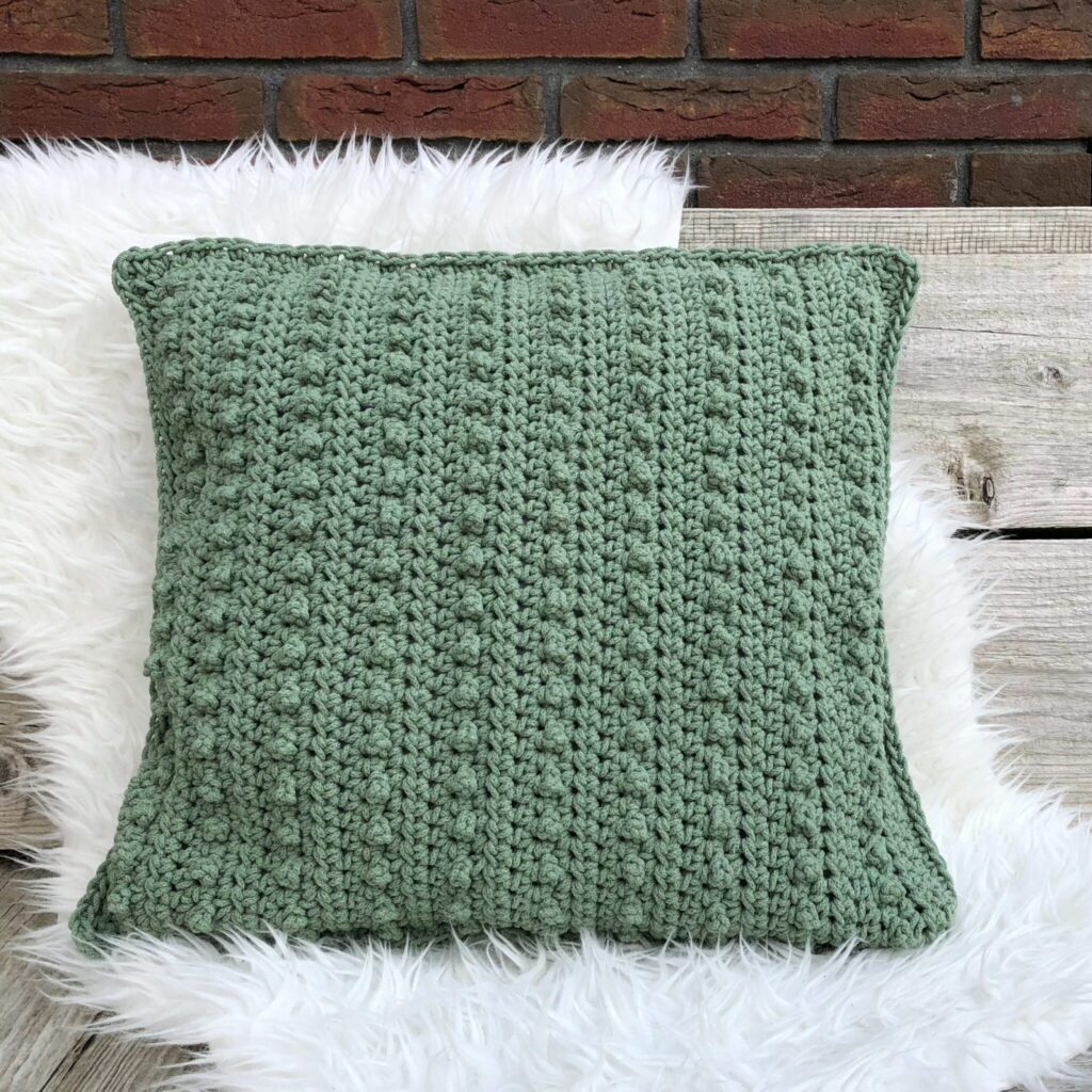 Een tijdje geleden kreeg ik van Ingrid van Wolzolder een streng Bobbiny garen om uit te testen. Ik koos voor de mooie korrelsteek en haakte er dit Bobbiny korrelkussen van. Door het grove garen is het een stoer kussen, maar tegelijkertijd zijn de korrels op het kussen juist weer lieflijk. Ik vind vooral de combinatie daarvan erg leuk! Een tutorial van de Korrelsteek vind je op het YouTube kanaal van Gek op Haken.