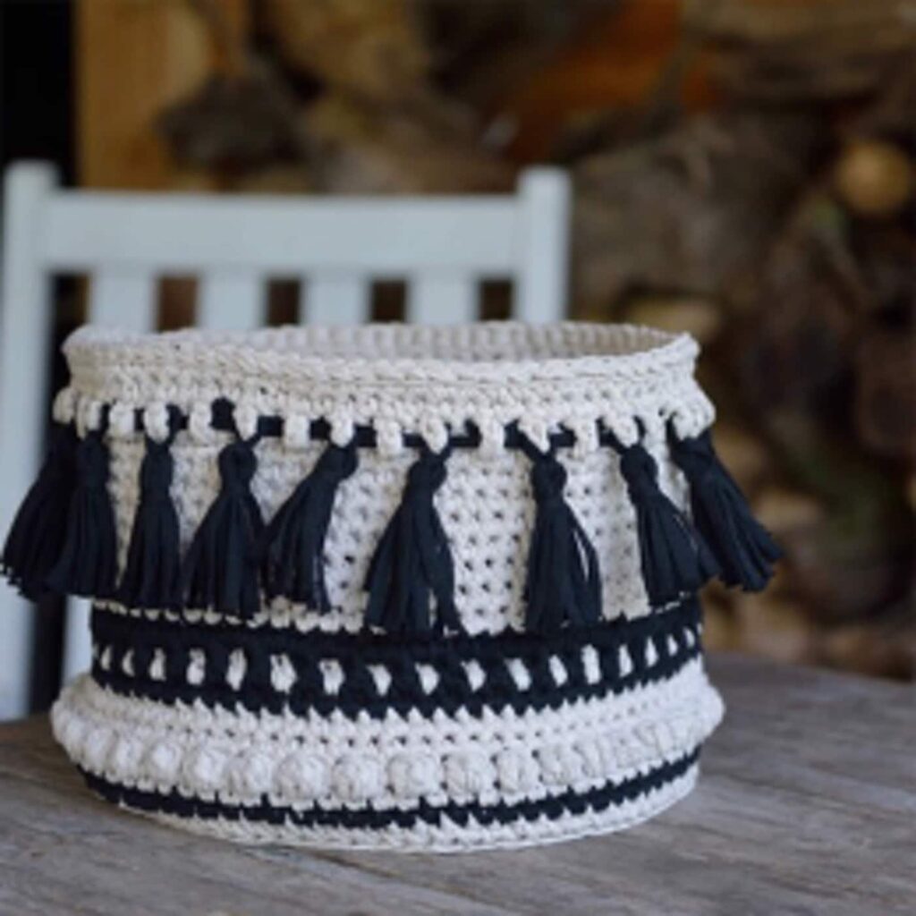 Laat de zomer maar komen! Met deze XL gehaakte Boho-mand van gerecycled garen krijg je vanzelf een vakantiegevoel. Zet de mand op de tuintafel tijdens een etentje buiten en serveer er broodjes in. Of, zet hem naast je luie stoel en vul hem met je favoriete tijdschriften.