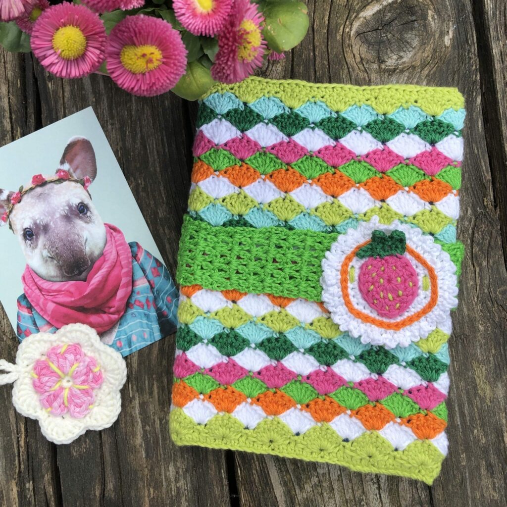 Wat is er gezelliger dan een notitieboek met een kleurrijke, gehaakte schriftomslag?! Speciaal voor Gek op Haken heeft Marjan van der Leer dit leuke schriftomslag ontworpen. Haak de omslag in mooie verschillende kleuren of in twee kleuren voor een speels effect. Je kunt ook eindeloos variëren met het rozet. In het patroon geeft Marjan enkele ideeën voor op het rozet, maar je kunt natuurlijk ook een andere leuke applicatie haken voor jouw persoonlijke touch!