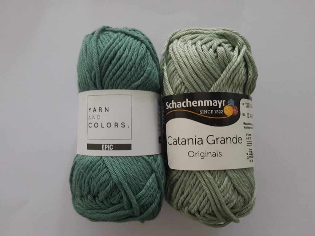 - Scheepjes Cahlista: niet gemerceriseerd en dus een matte finish. De bollen zijn 50 gram met een lengte van 85 meter.